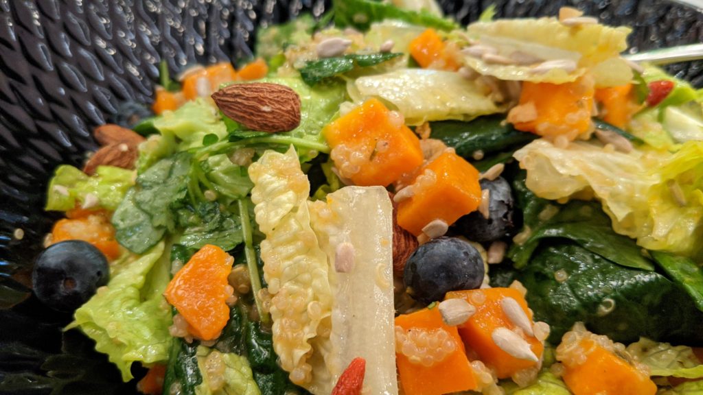 Food overall is pretty good. Even if it is not vegetarian there are so many veggies I can skip the meat. It is amazing how hungry you become when you hear the cart roll down the hall.
