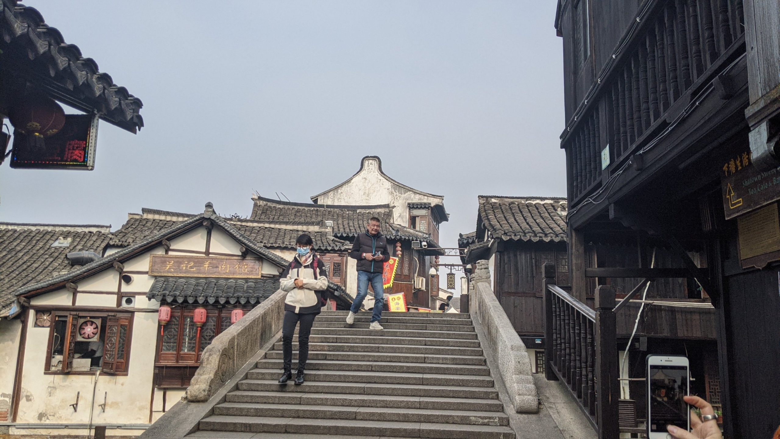Boarding the flight required filling out a China customs app and showing our green health code which made us eligible to fly. We showed them often…. The hardest part of the flight was keeping a mask on for 24 hours. We could take it off to eat and drink but not for long. The key is to change masks often for comfort. There were empty seats so the crew was nice in letting us move for more space. The food was good and I was able to get vegetarian. Add there was wine…. And I was able to lay down across seats to sleep. I appreciate it now that I’m 57 and my legs swell when I sit for so long even with compression socks.