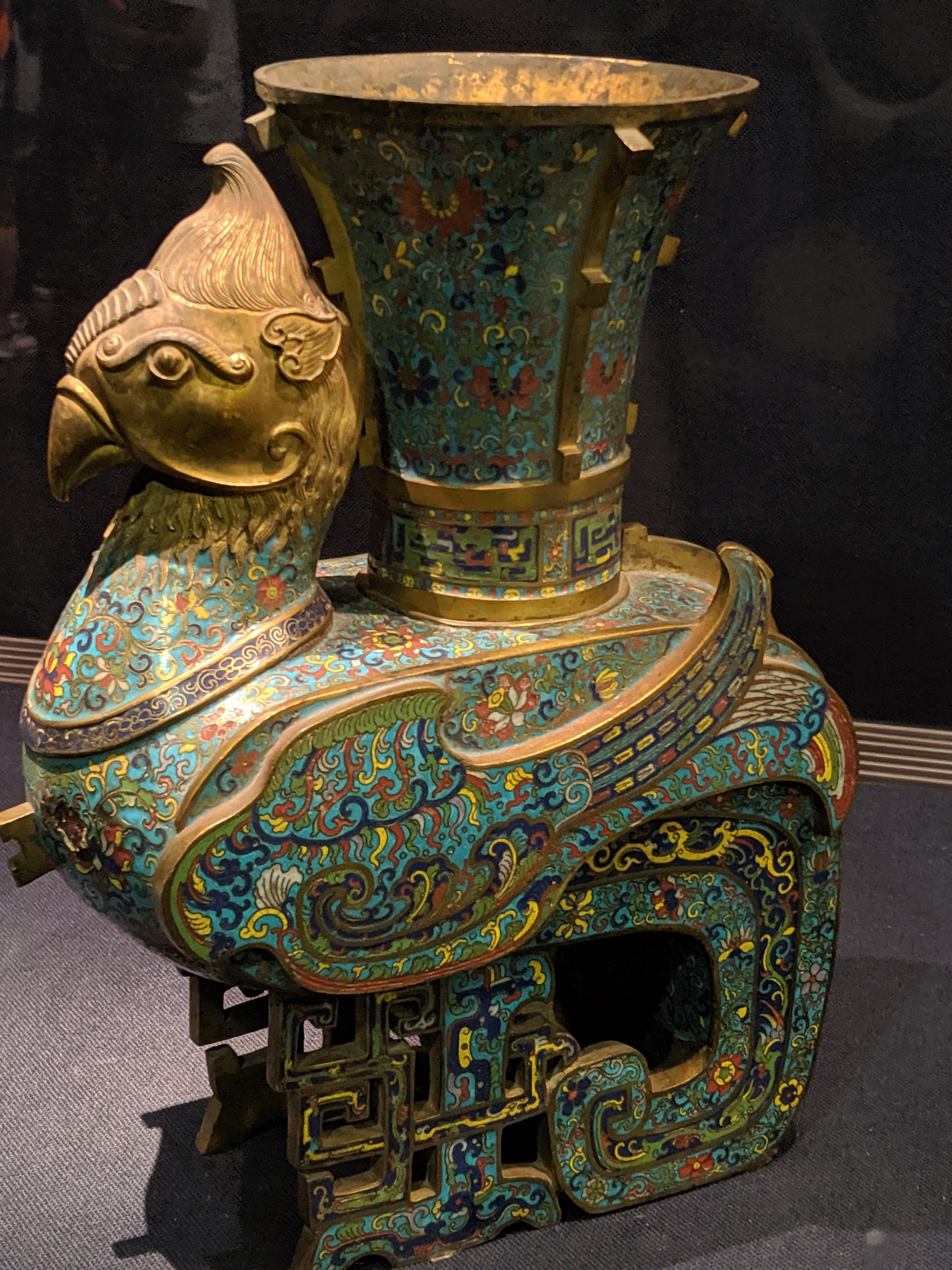 Cloussone zun vessel in the shape of a bird from the Qing dynasty.