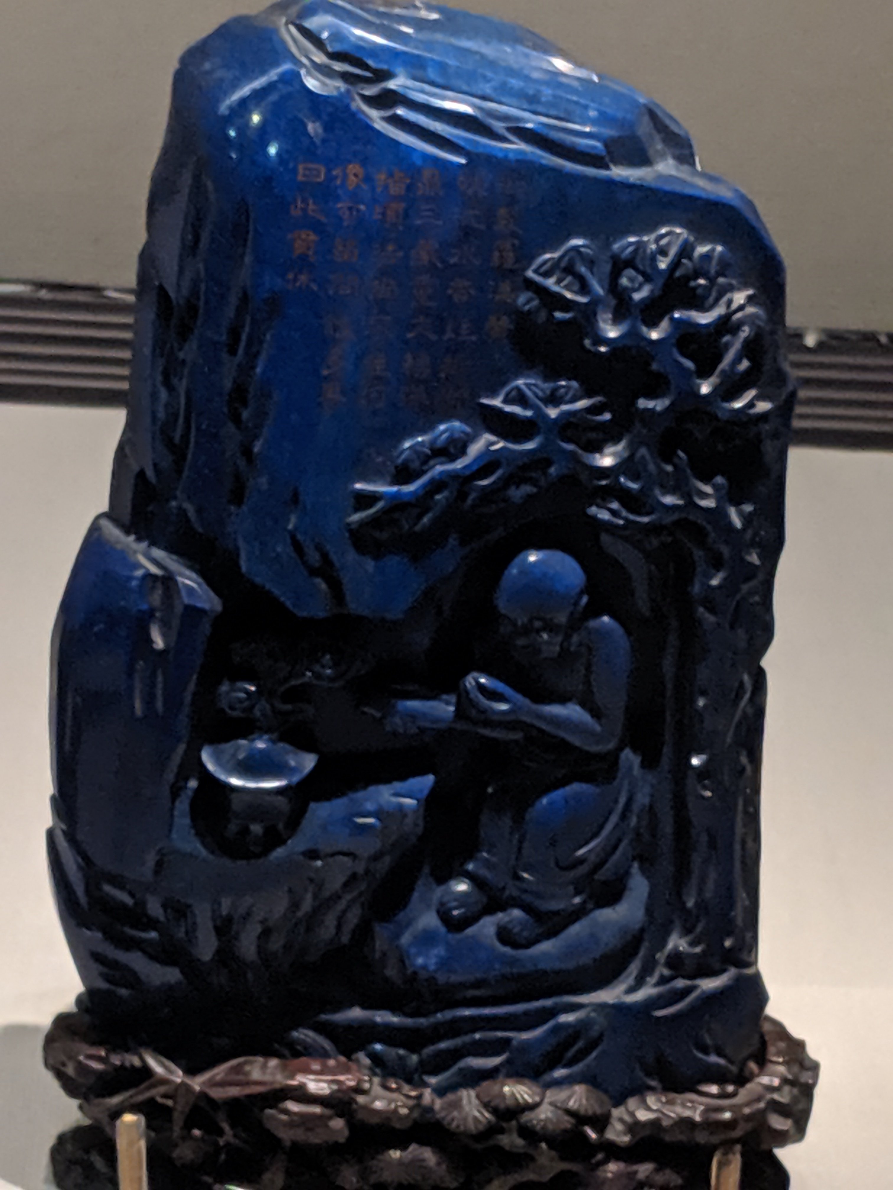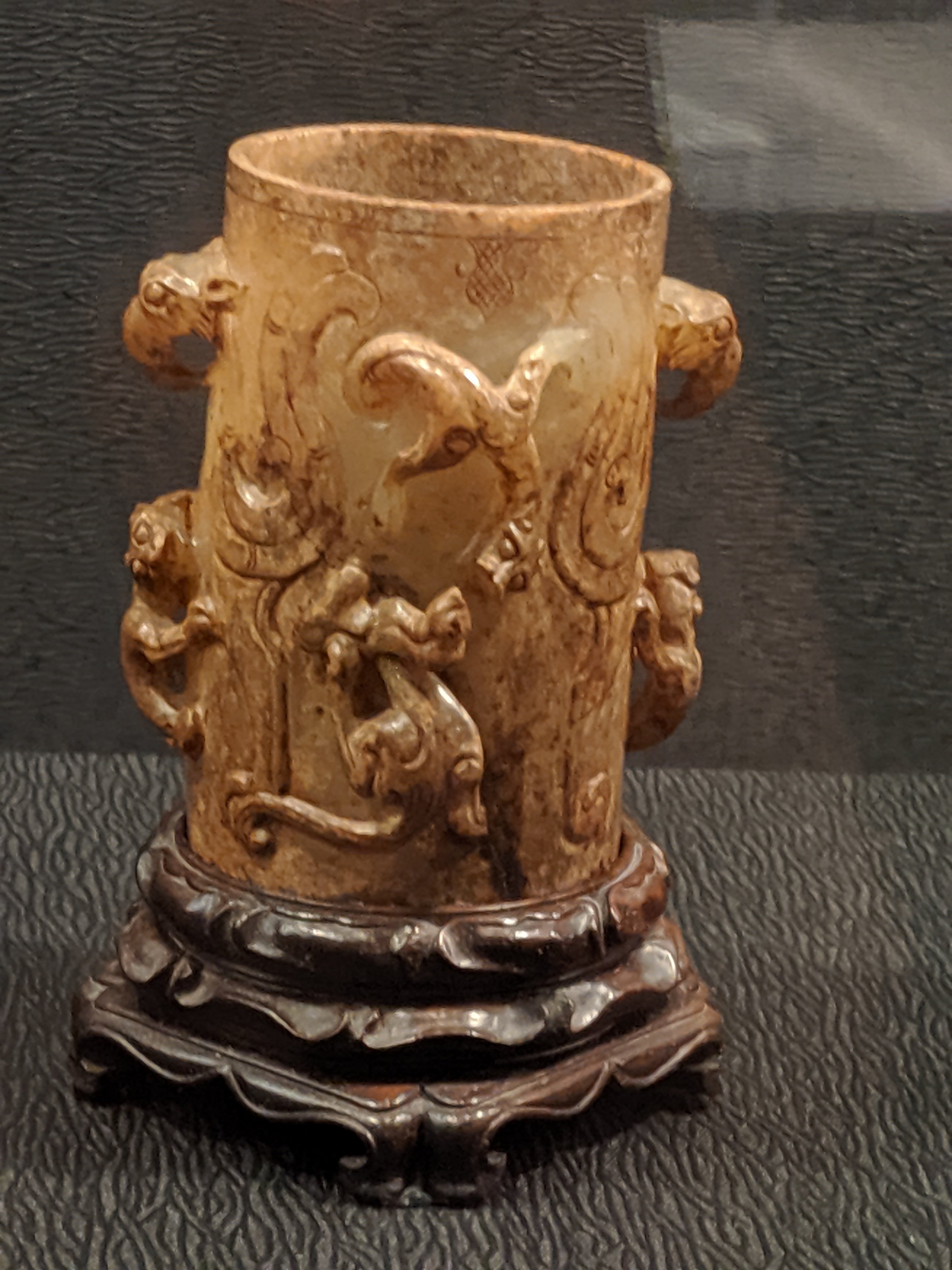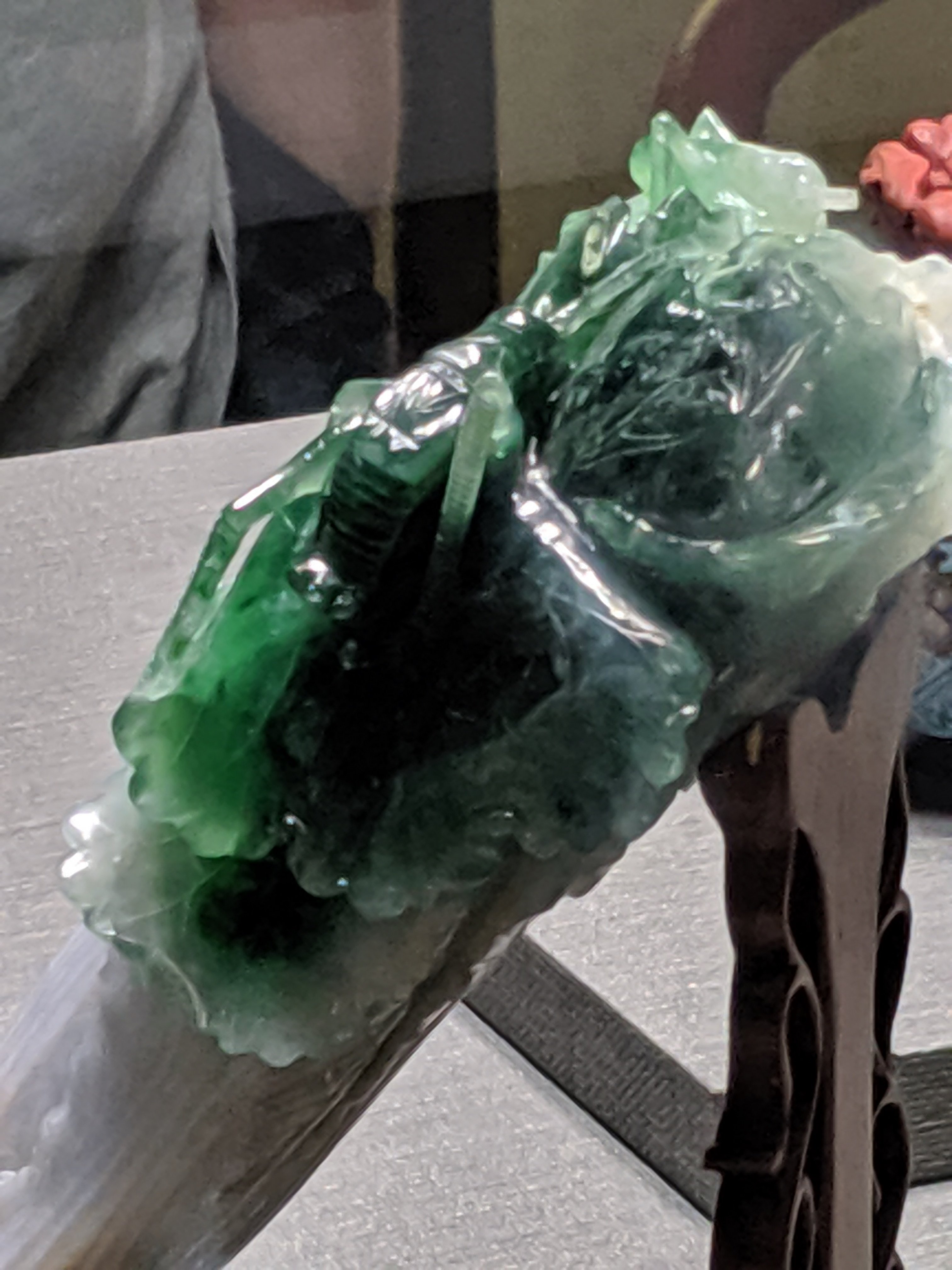 They had a special collection of jade. It showed how jade can be carved in different ways to show tension, movement, etc.