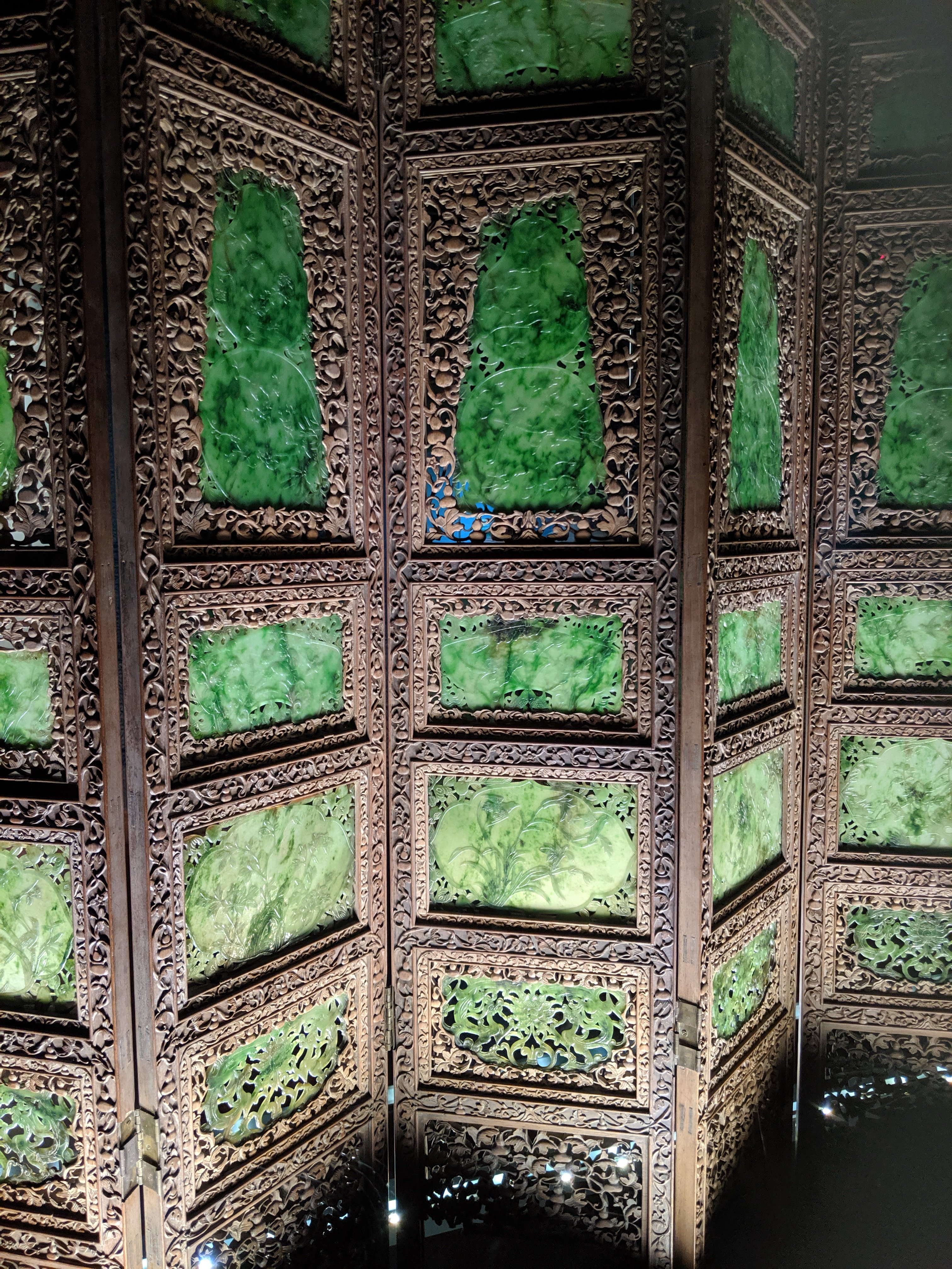 A jade screen from the 1940’s that was originally not thought to be made of jade but instead a similar looking mineral. However it is all jade.
