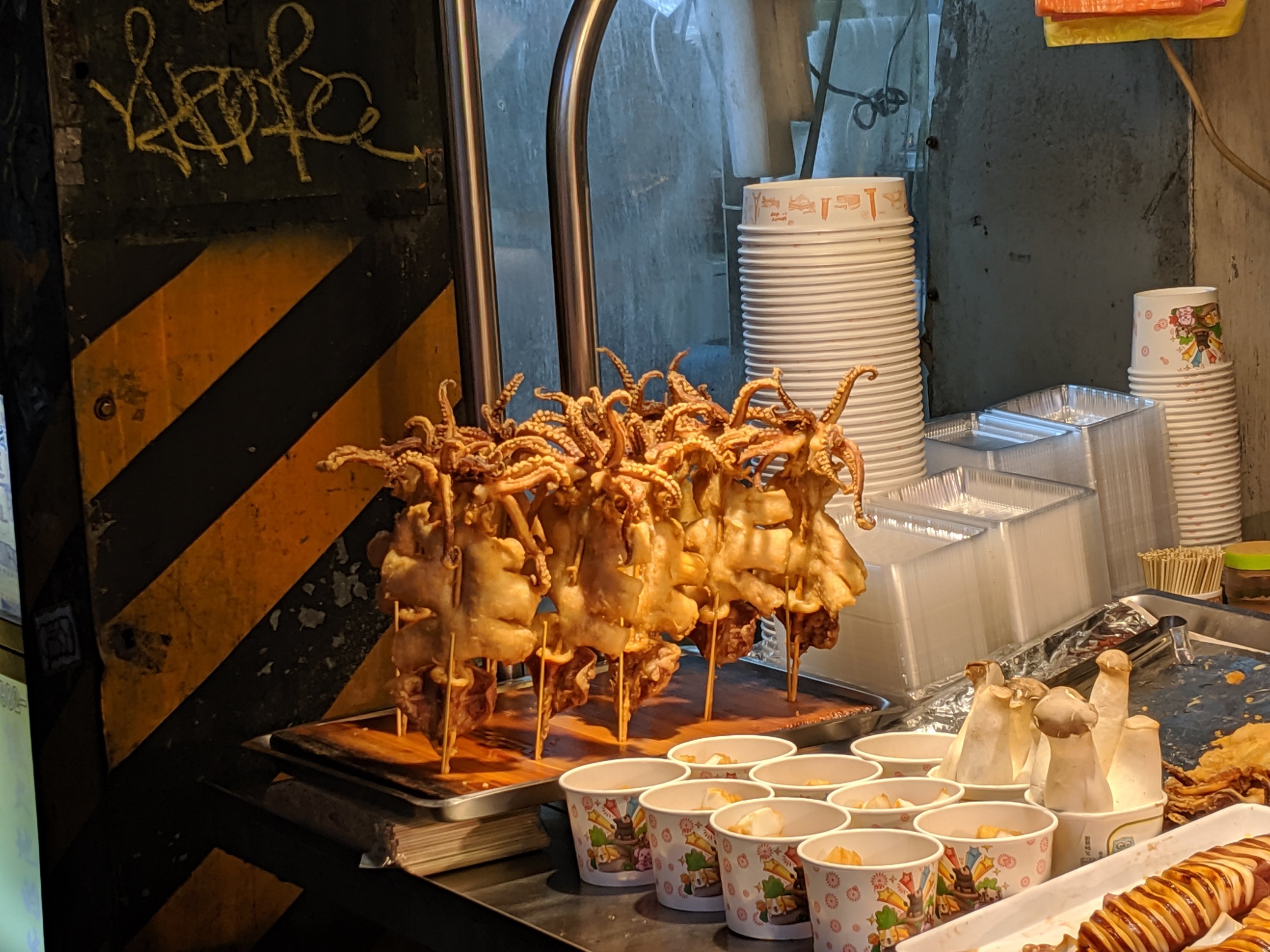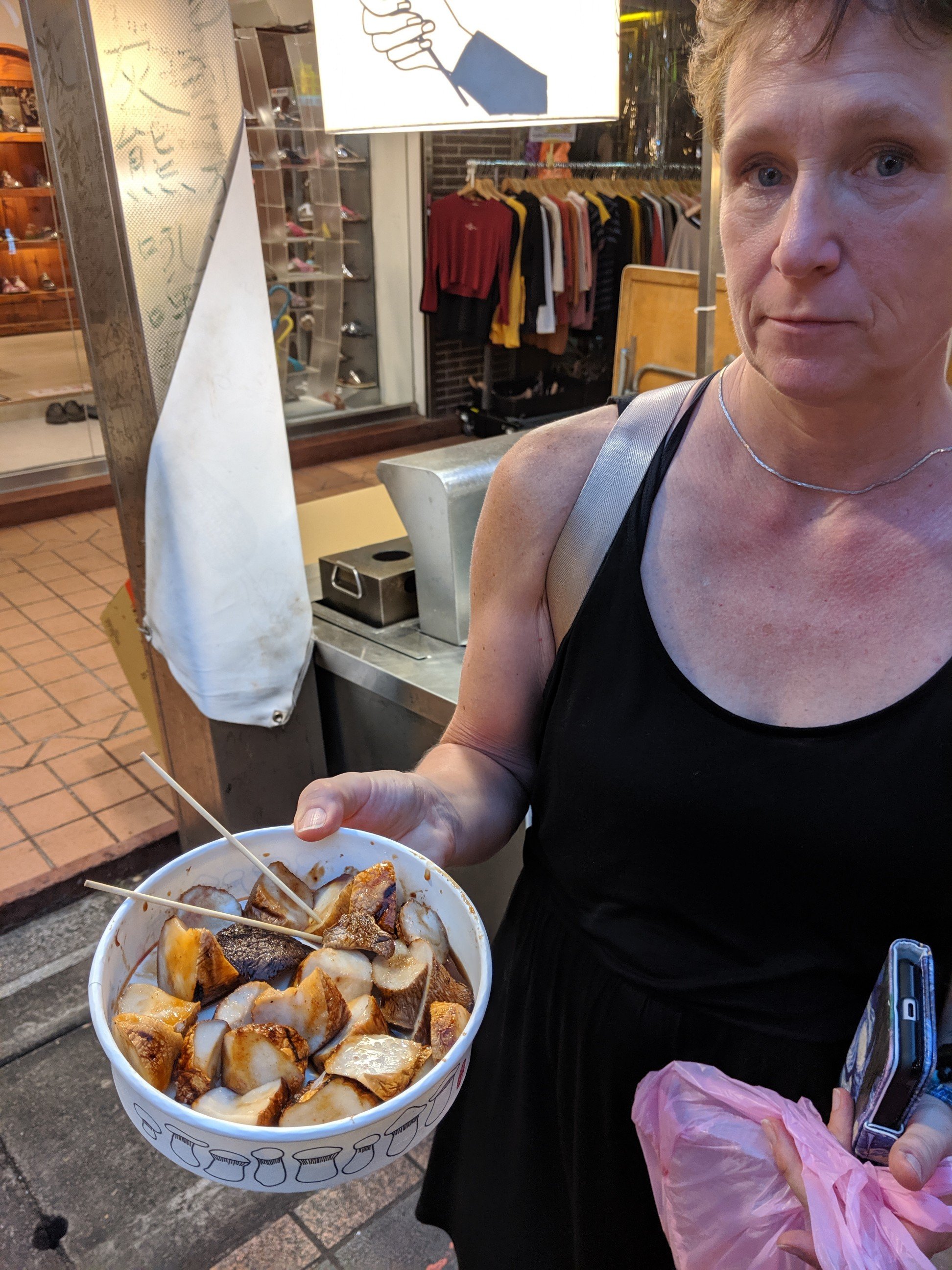 We went immediately to the night market as the street food in Taipei is the best. The first thing we found was sweet potato balls with cheese filling. Amazing and not greasy.