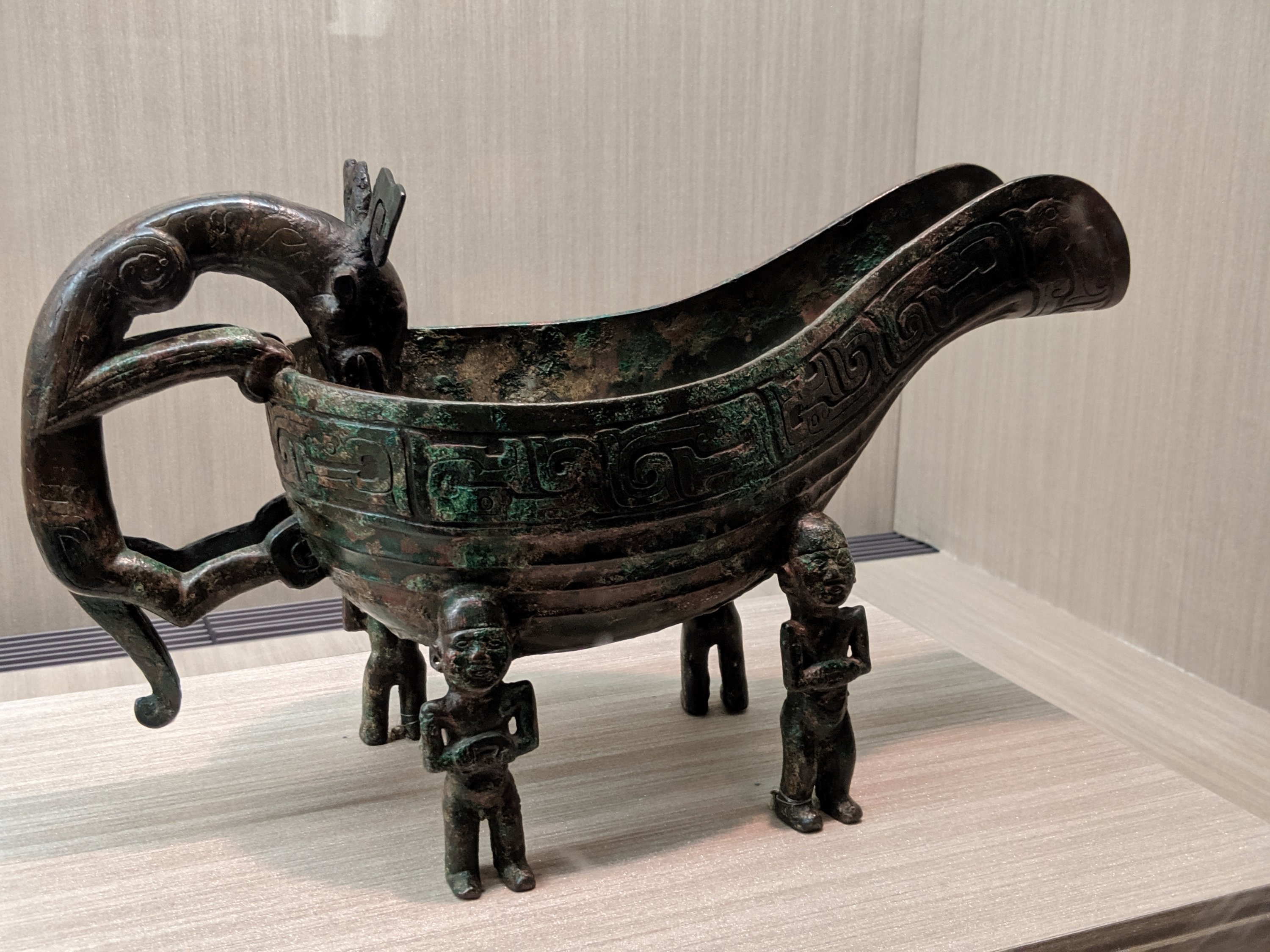 Look at this one. It is a To water vessel with an animal handle and humans as feet. It is from the Zhou Dynasty.