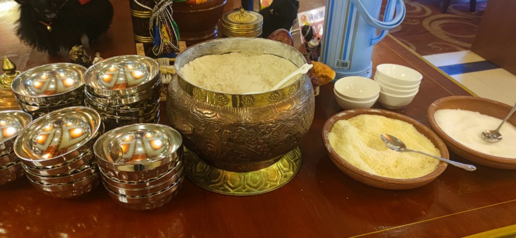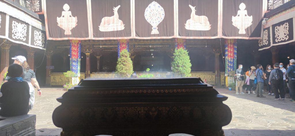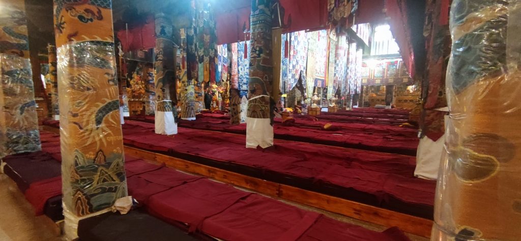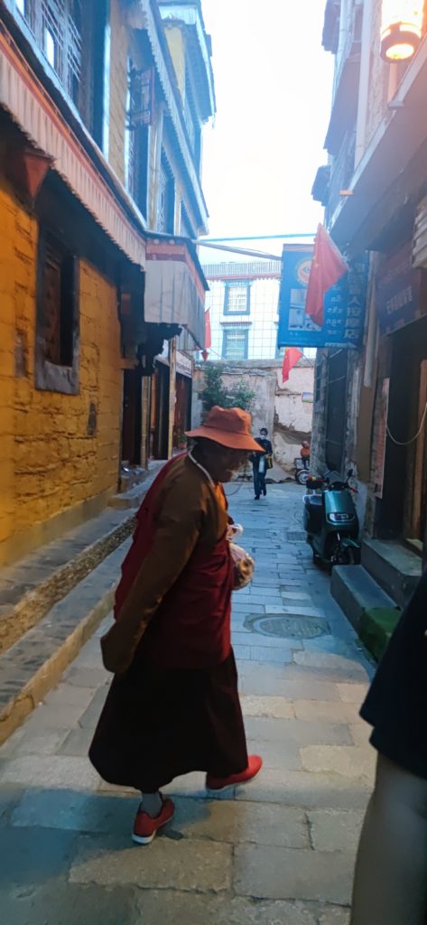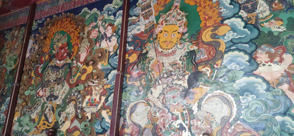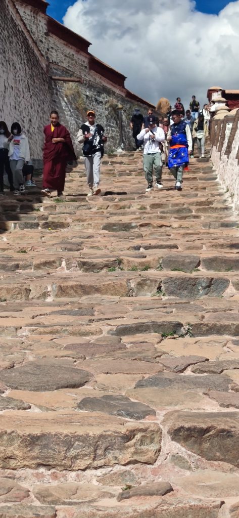 Built in 1427, the most prominent feature is the giant stupa. This one is different from others and has 5 floors and 68 prayer rooms. It is named Gyantse Kumbum. In each of the tiny chapels are exquisite paintings (kumbum means 100,000 images). It is important to follow a clockwise route around which is the same in any of the monasteries. The murals survived the Cultural Revolution though some statues had to be restored.