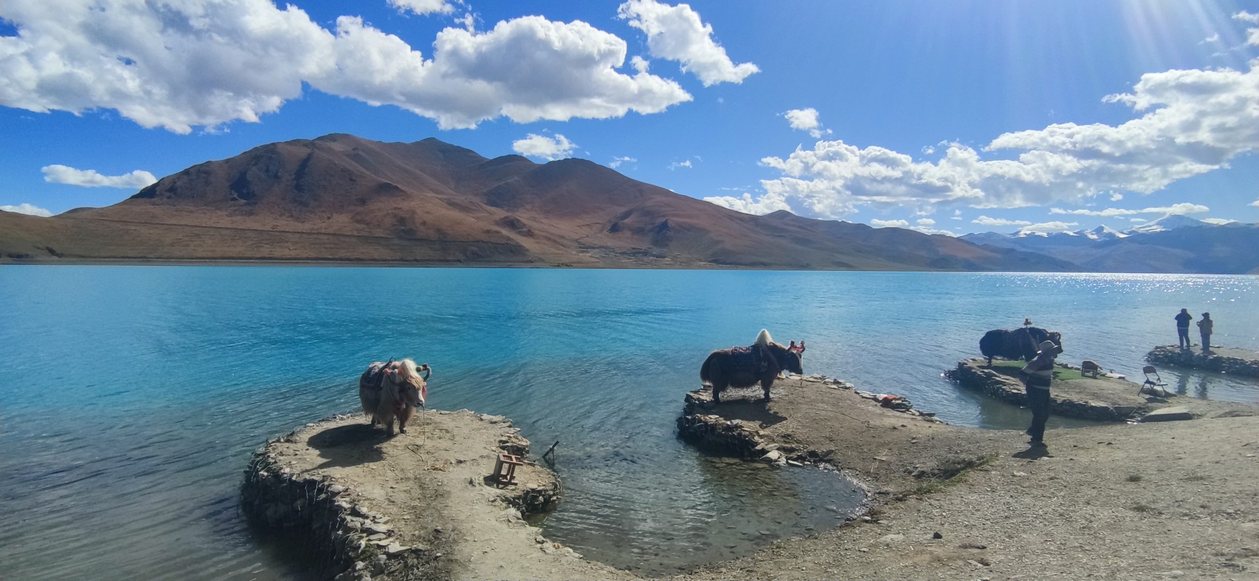 Yamdrok Yumtso, is a beautiful lake along the old Friendship Highway between Tibet and Nepal. It is at an altitude of 4,441 meters. Yamdrok is the largest inland freshwater lake in the northern Himalayan mountain range. Yamdrok Lake is one of the four largest sacred lakes of Tibet (the others are Lake Lhamo Latso, Lake Manasarovar, and Lake Namtso). According to Tibetans, the lake is a lifeline and if the lake dries up, Tibet would become an uninhabitable place. One is not to swim in it. Tibetans pilgrimage to the Lake and walk around the lake in seven days to remove their sins and earn merit. The lake’s spiritual energies are from the Second Buddha, Padmasambhava, who brought Buddhism to Tibet. It is also believed Lake Yamdrok helps to find the reincarnated soul of the Dalai Lama.