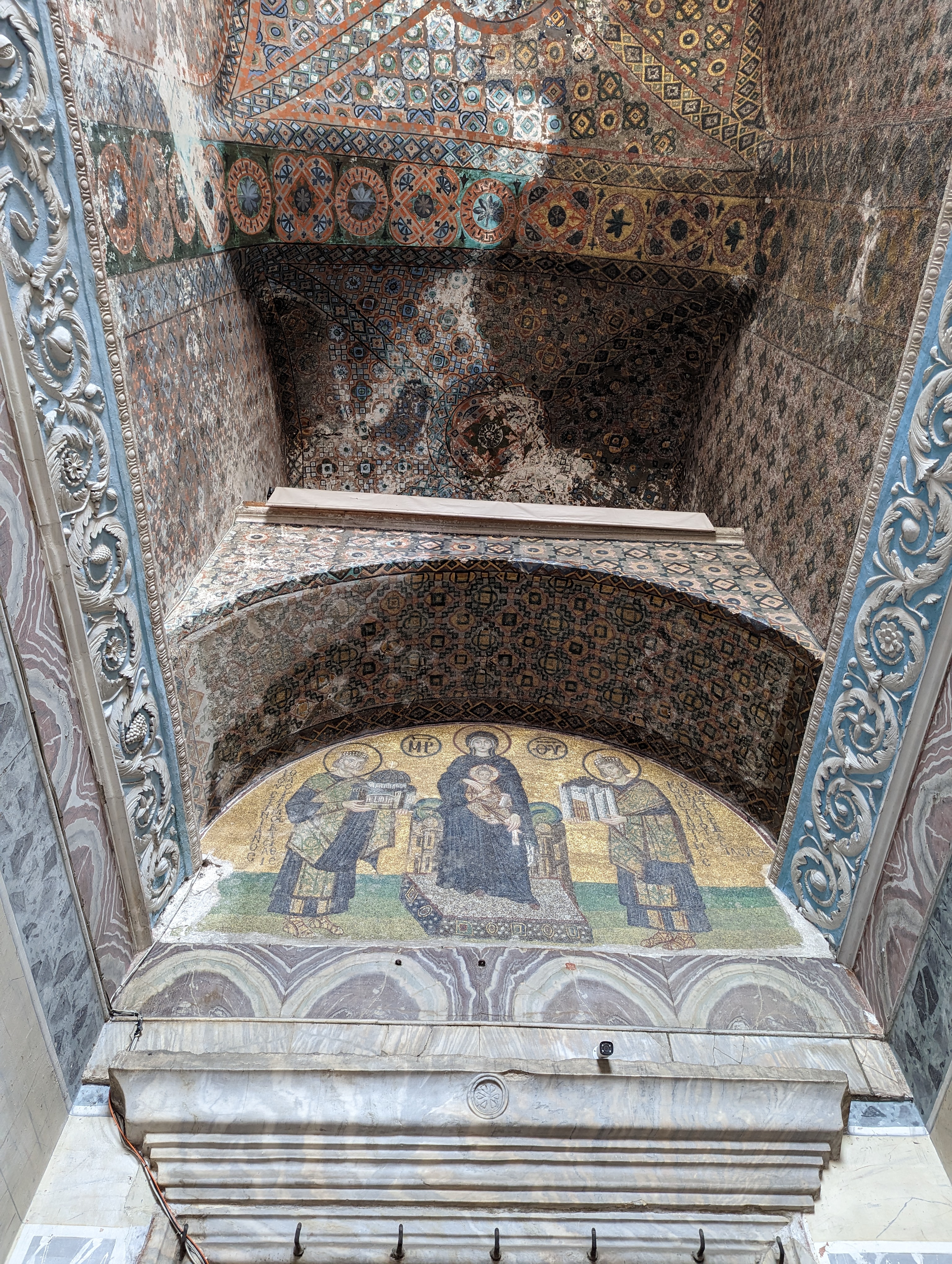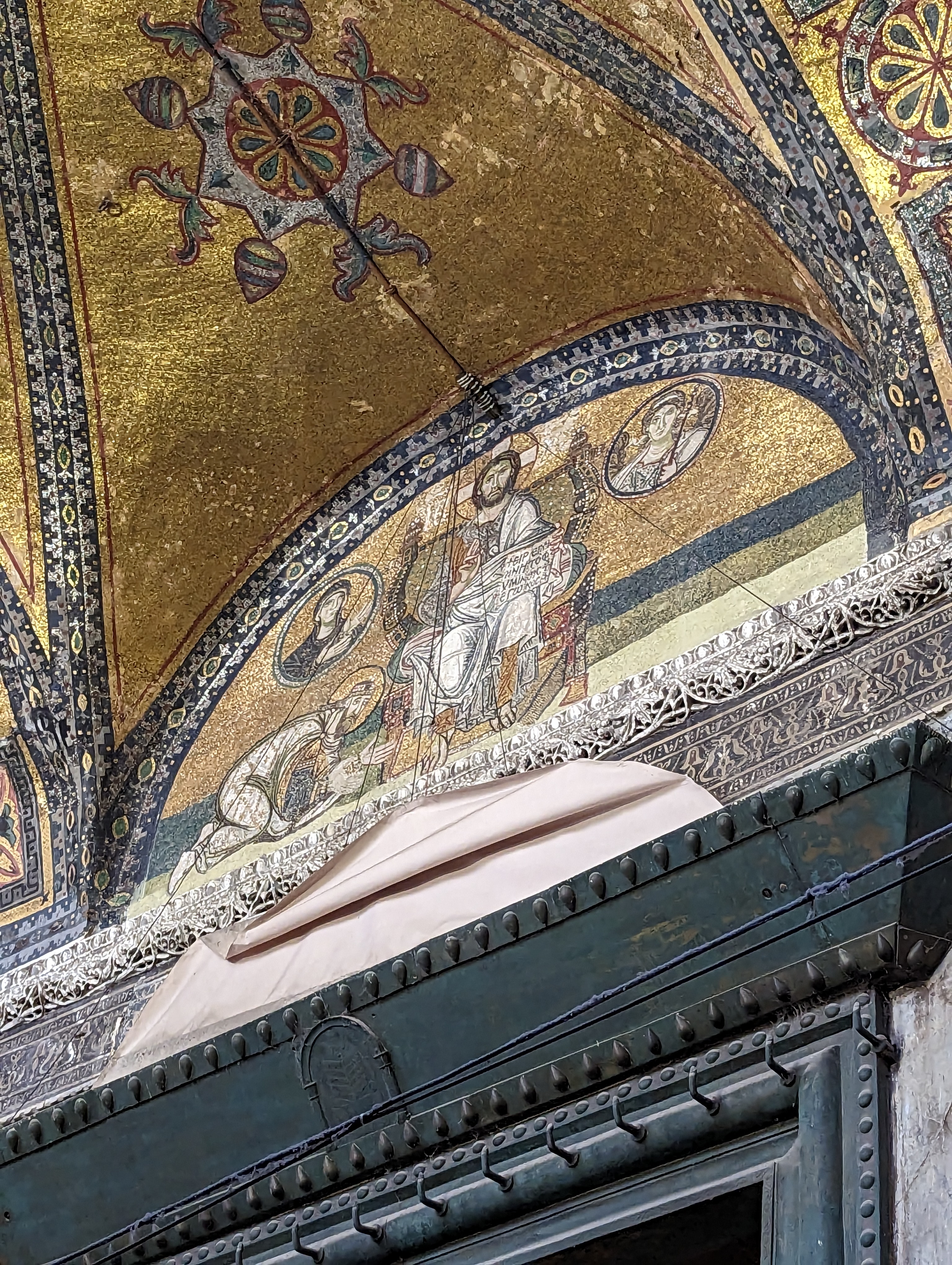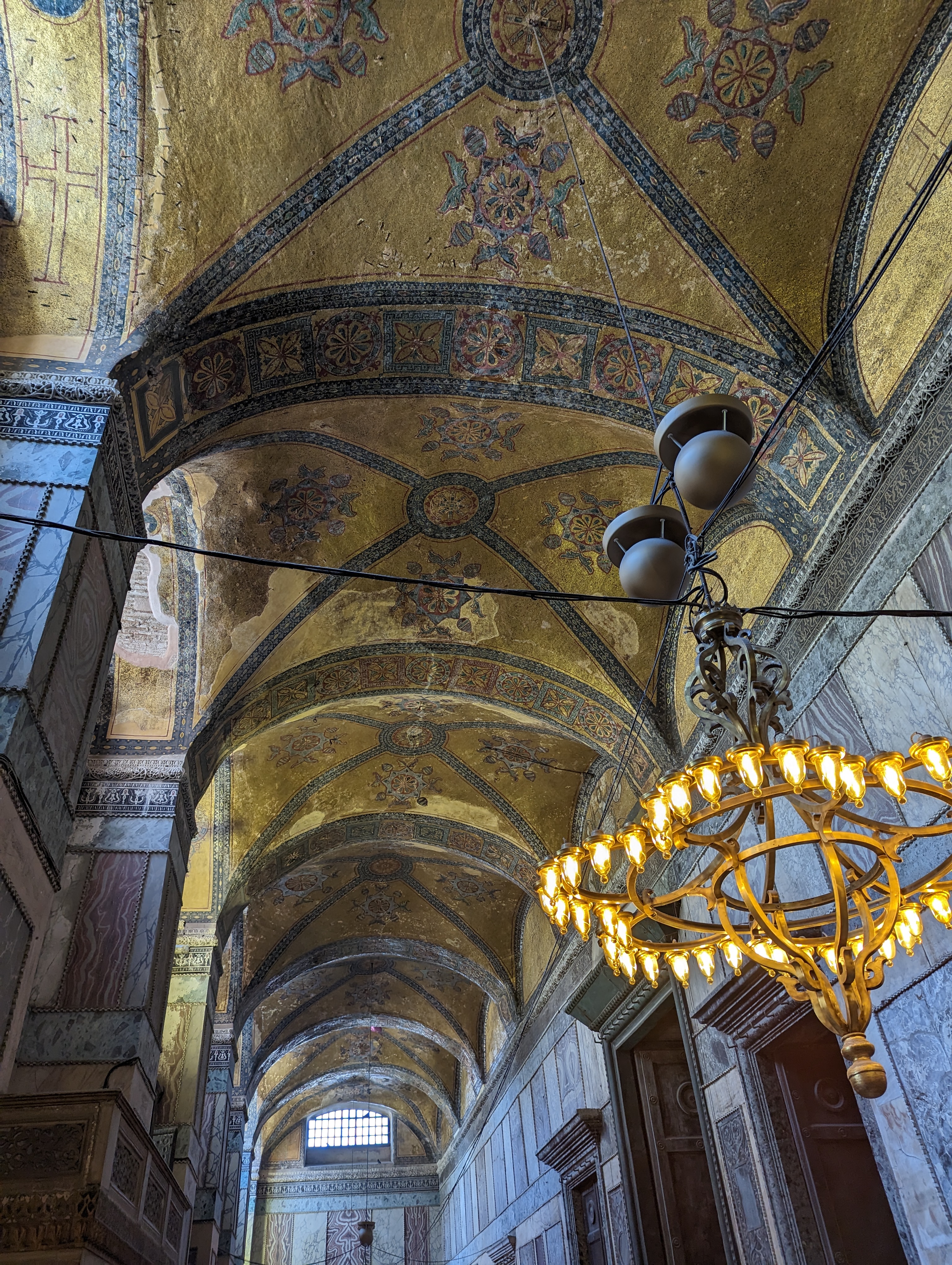 The mosaics depicting Christianity are allowed in the mosque as this is outside the prayer area.The mosaics in the ceiling of the outer hallway.Outside the center prayer area.