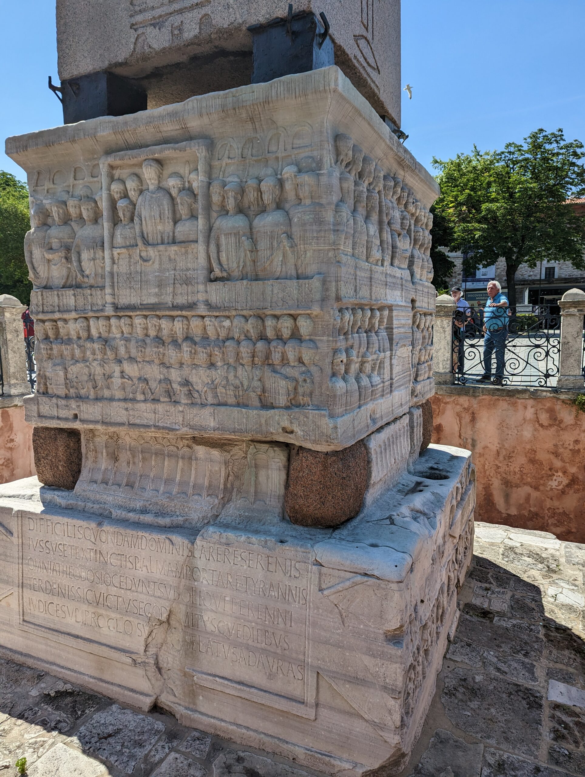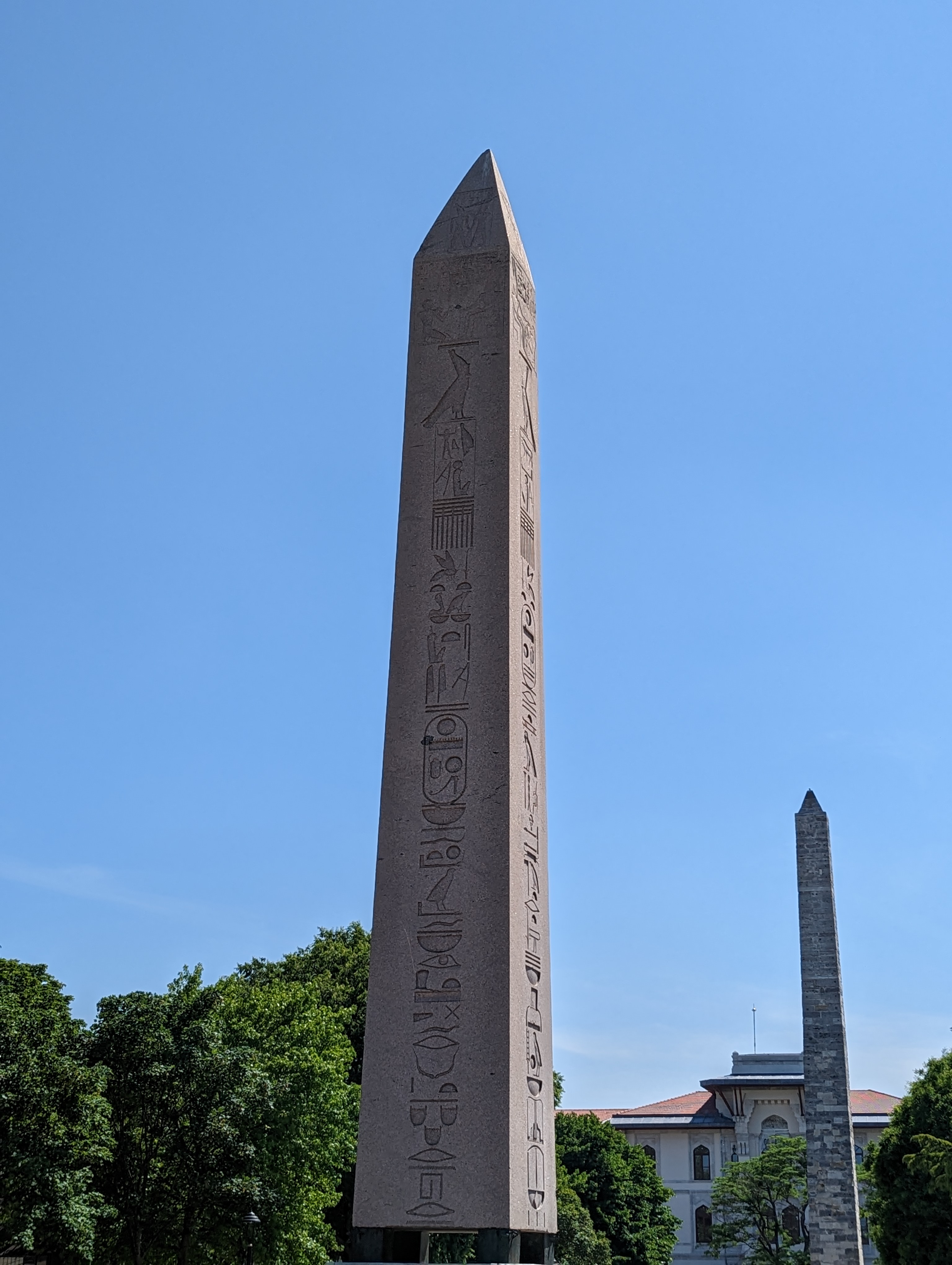 This obelisk has Egyptian carvings and was brought from Egypt using slaves to transport it.