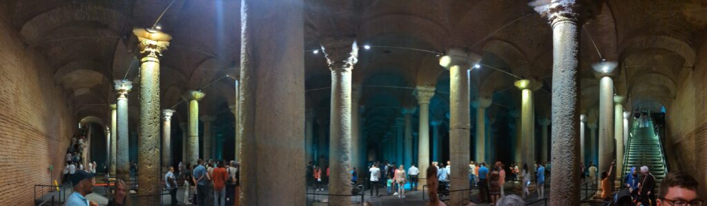 The cistern’s name “Basilica” is derived from the fact that it is located underneath the site of a former basilica that once stood on the same spot. The cistern was forgotten for centuries and was only rediscovered in the 16th century.