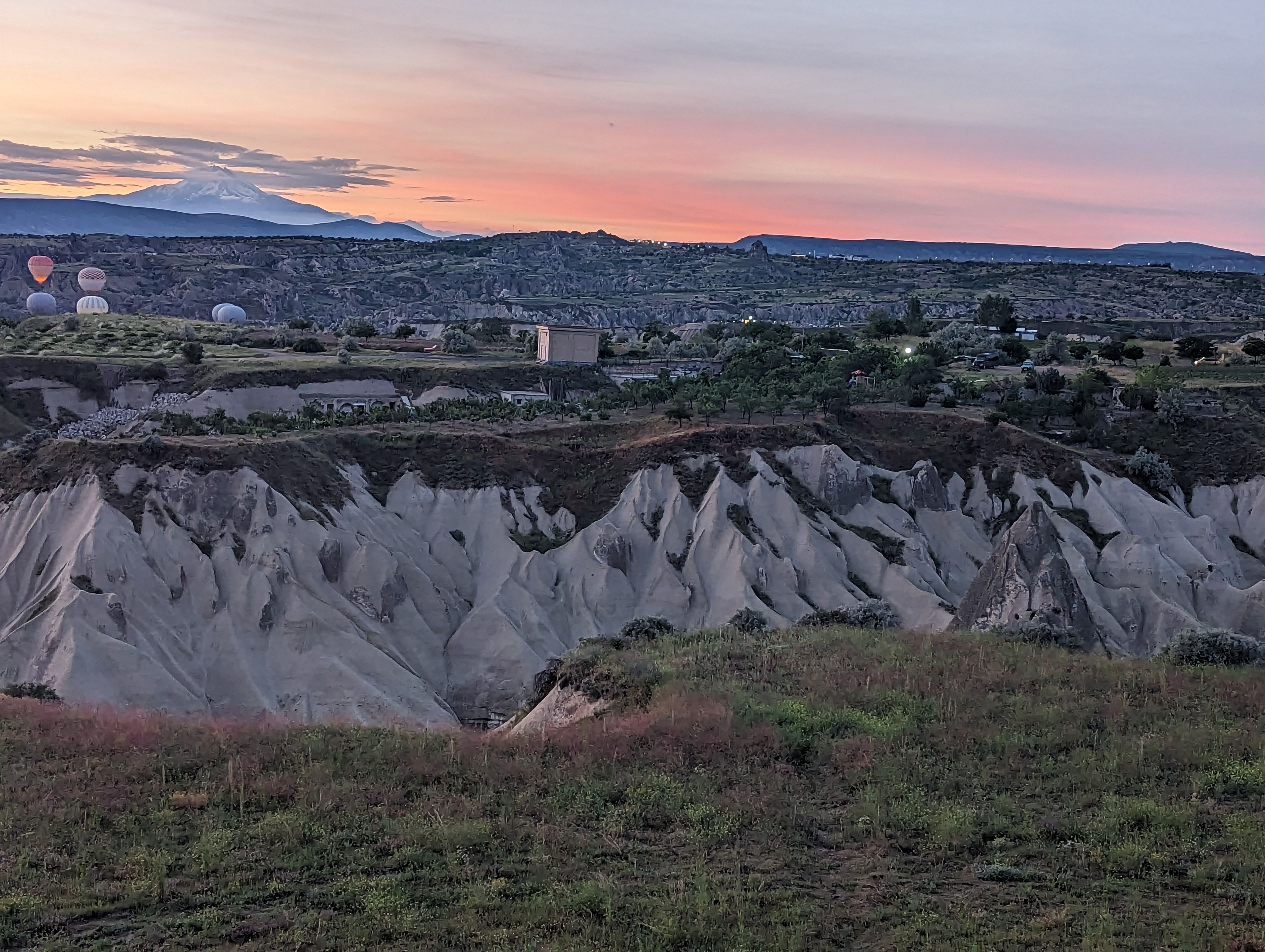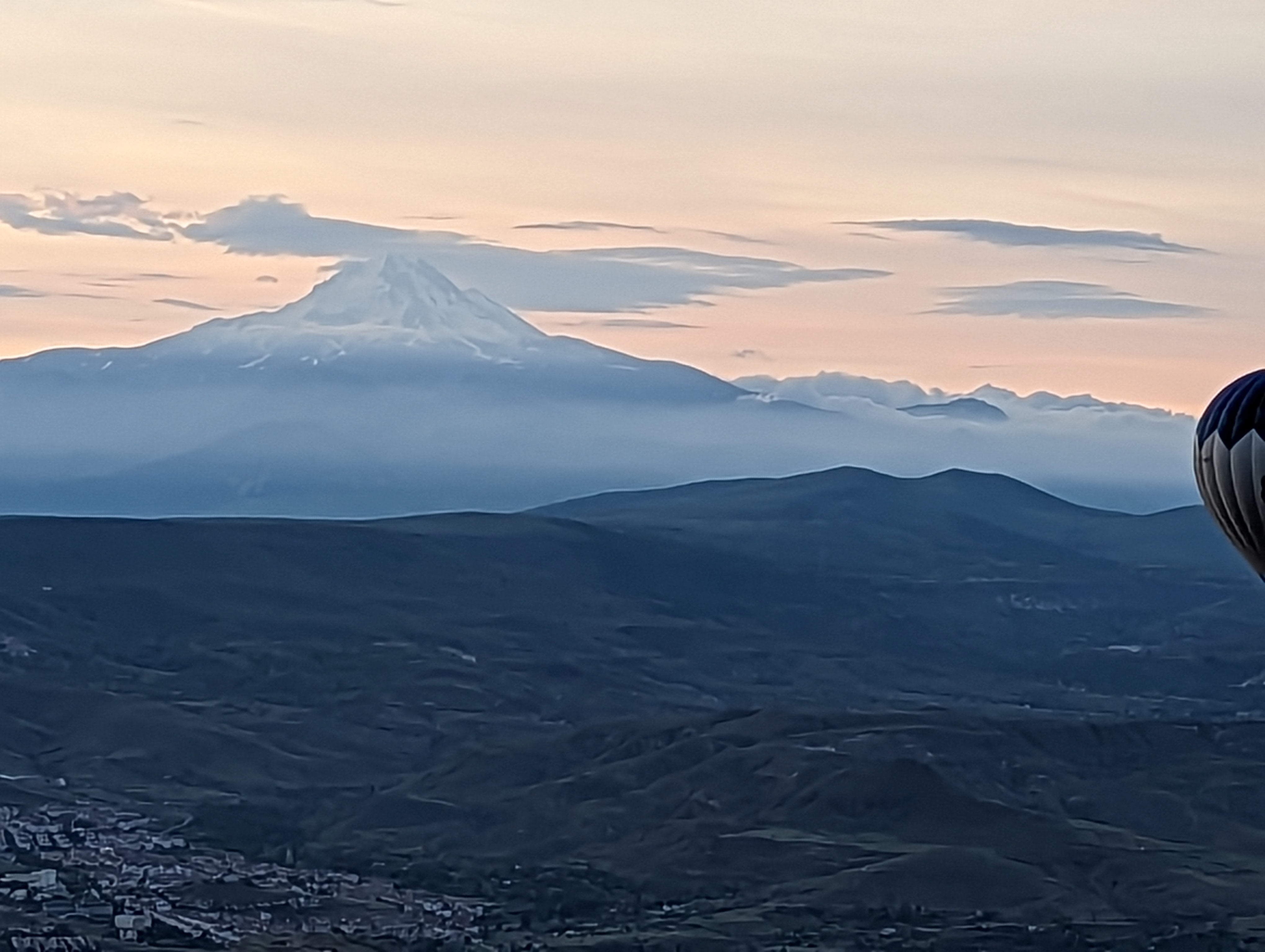 Mount Erciyes, also known as Argaeus is an inactive volcano in Kayseri Province, Turkey Fairy chimneys from over 1000 meters.Throughout the region there many caves dwellings.One of many interesting valleys.A local house.Such interesting landscapes.Breathtaking.There are some amazing structures.The sunrise and colors would be more spectacular with less clouds but we were fortunate there was no rain as had been forecasted.