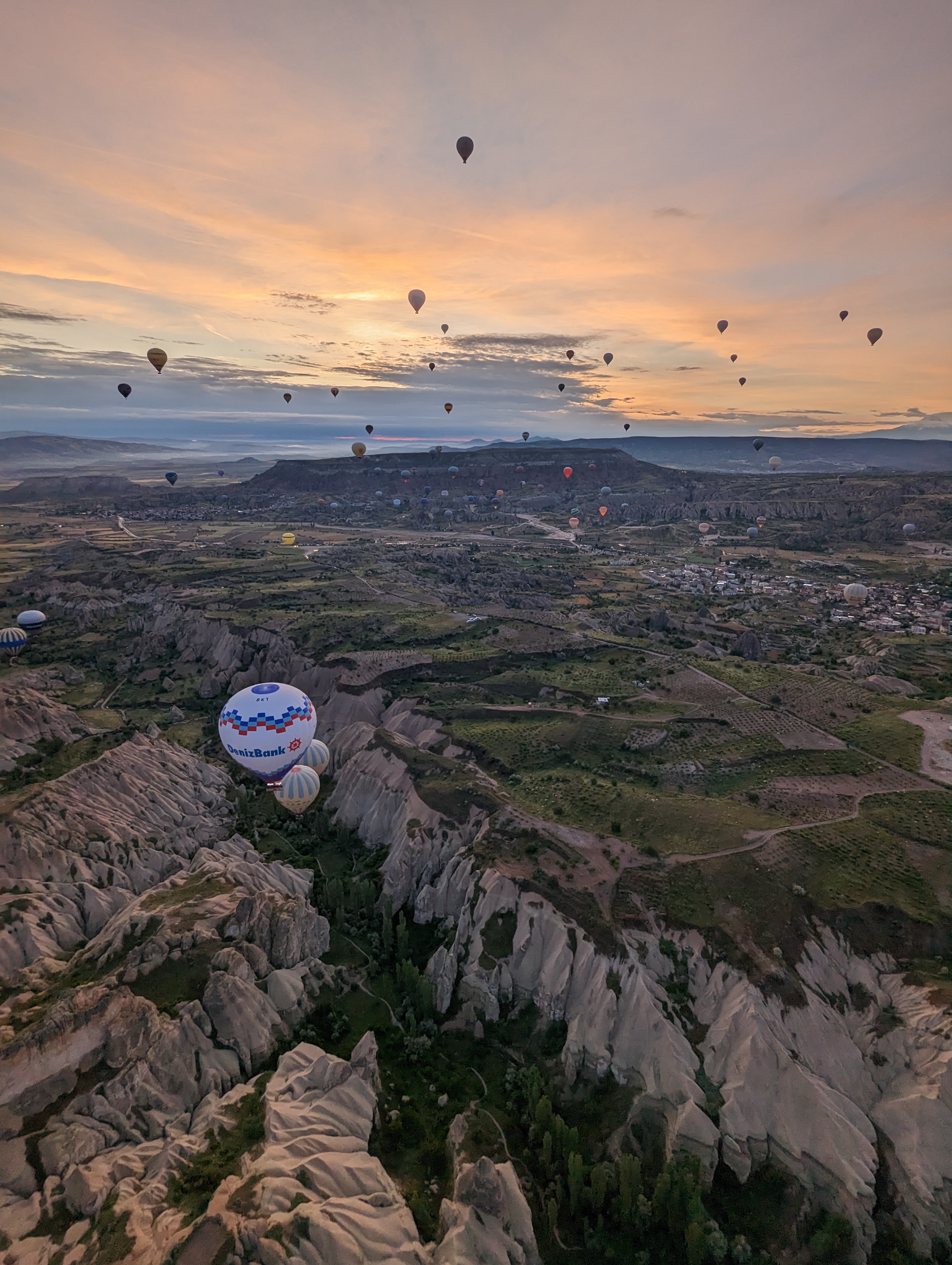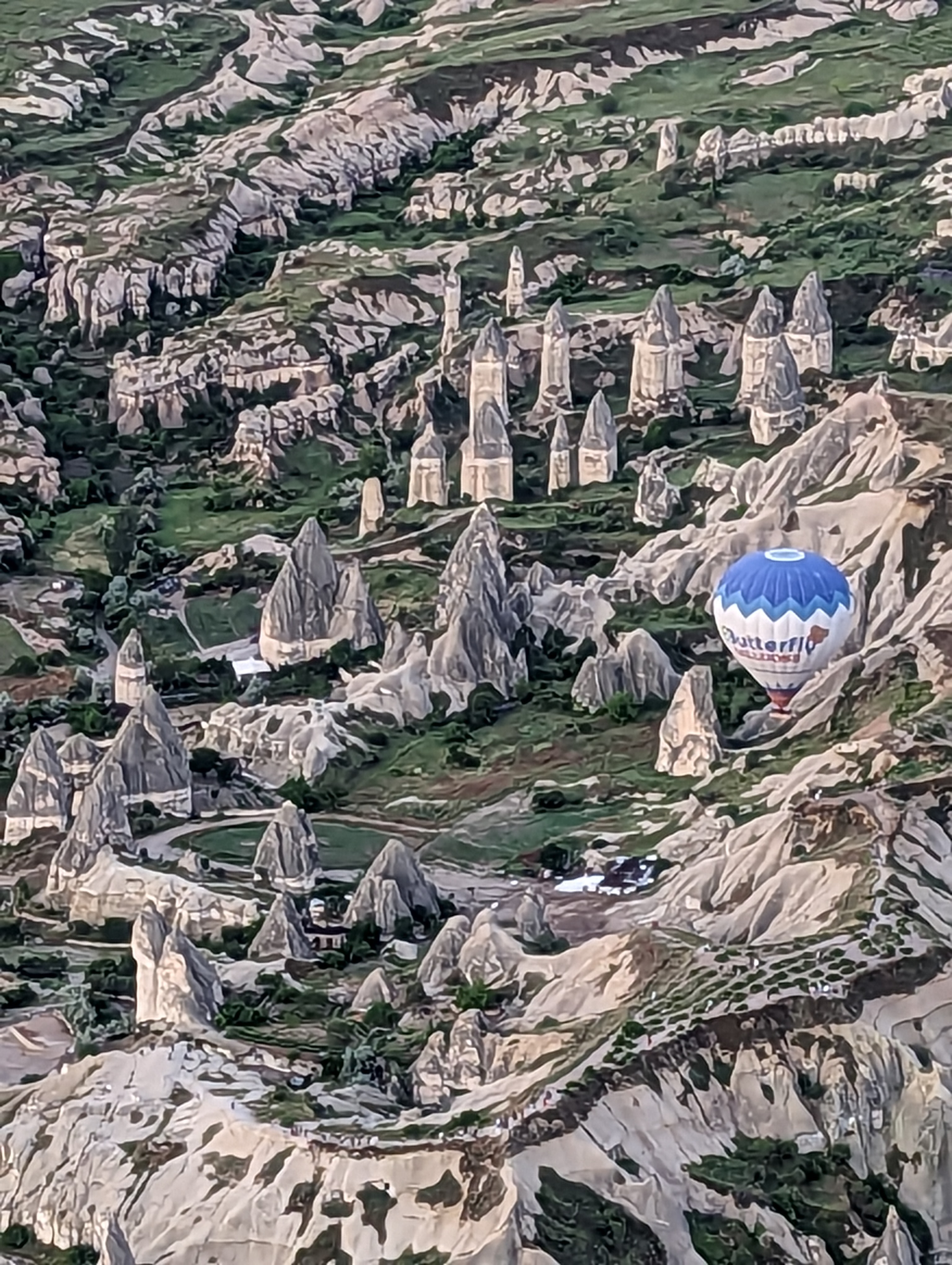 The unique landscape of the region is dotted with fairy chimneys and other rock formations, which was truly spectacular to view from above.