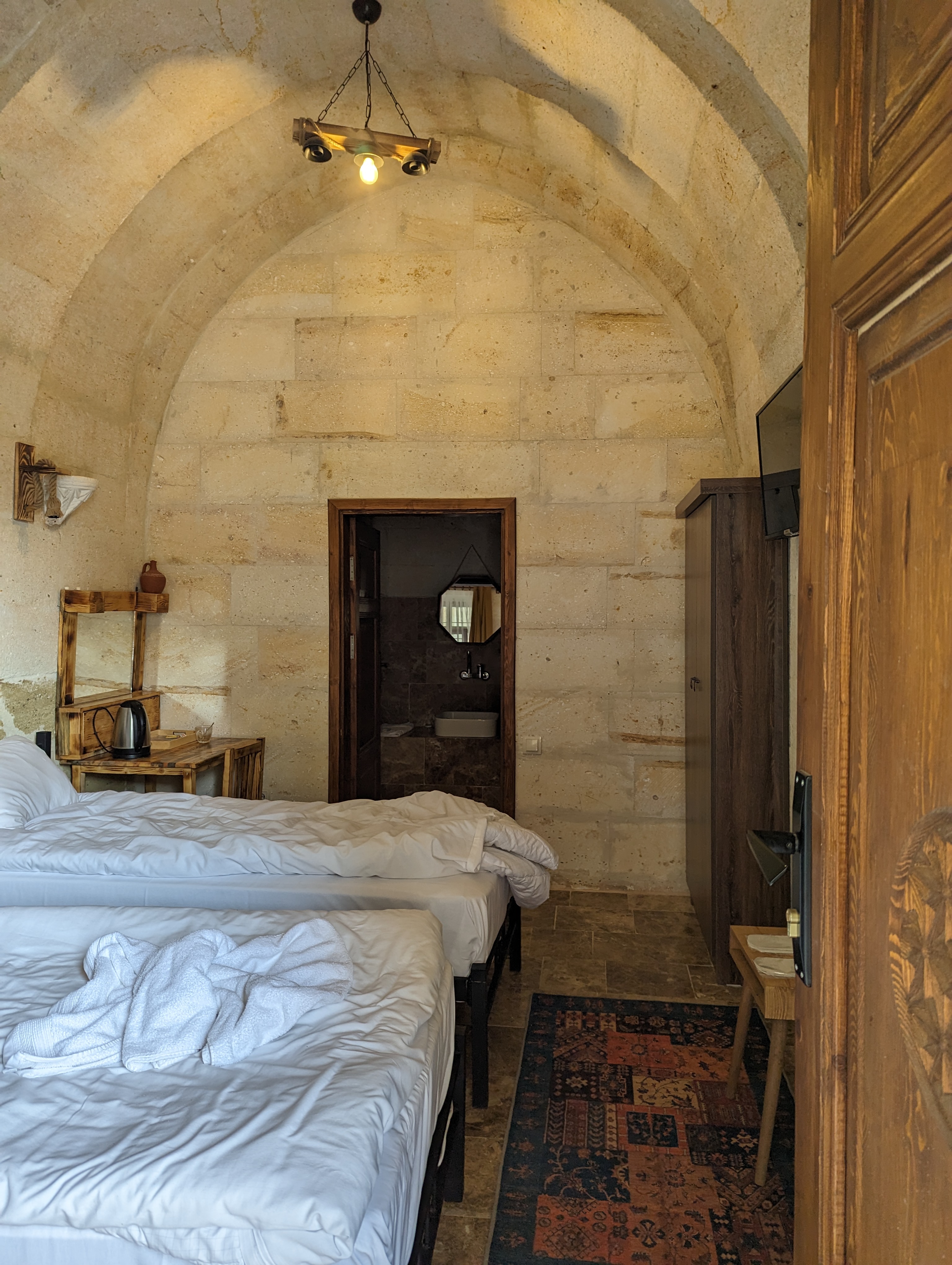 Cappadocia, located in central Turkey, is really unique and is unlike any other destination in the world. The landscape is stunning in its natural beauty, but it also has a rich history, and unique cultural heritage. There are many caves hotels you can stay in. The front face is built into the rock and the caves are used for rooms. Those are pretty pricey and many people are claustrophobic as there are no windows.