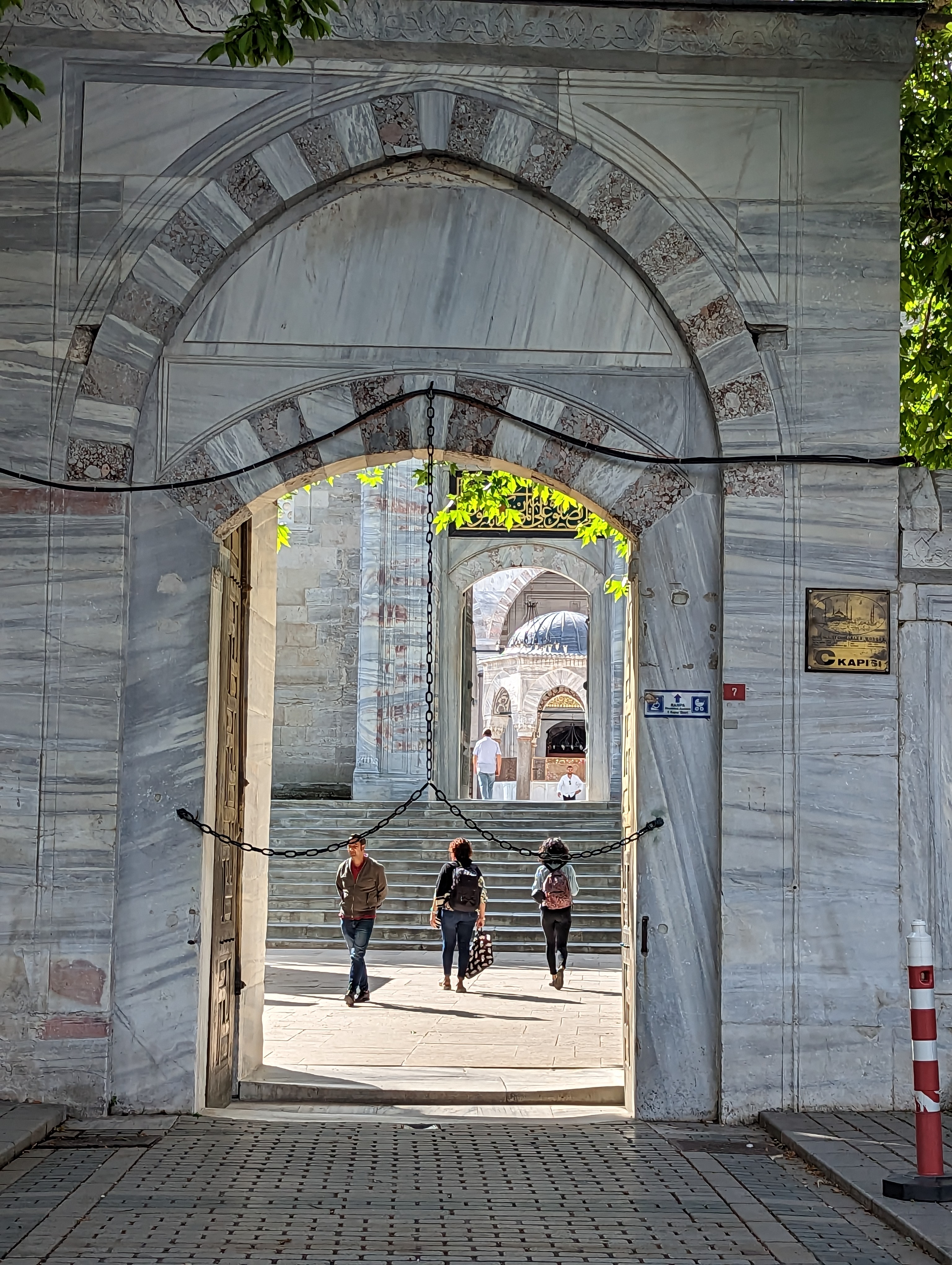 The entrance has chains that remind even the sultan that everyone who enters bows before God.