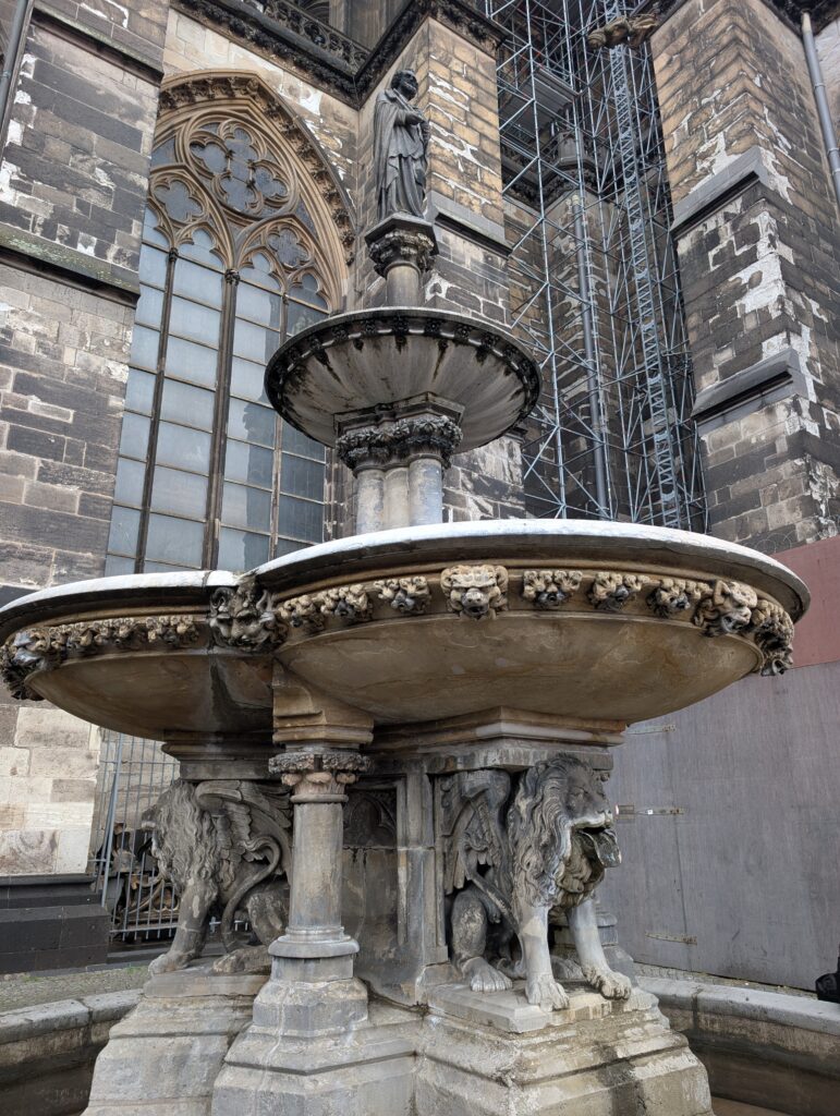 Petrusbrunnen is the fountain of St. Peter of which the cathedral is named. The fountain wasn’t always here nor had a water source since 1870 and was nicknamed Dry Peter. Now in its location it has water and he is said to be holding keys to heaven.