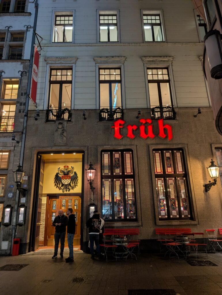 Instead of a regular walking tour I decided to go in a beer tour as the Kölsch beer here is regulated much like champagne is in France and only found in Cologne. It is crisp and light and a too fermented beer which can go flat relatively quickly. Because of this it is served by köbes (waiters) in tall narrow glasses called a stange, not like the big mugs we are used to, to prevent it from going flat. The köbes will keep bringing beer unless you put a coaster on top of your glass.