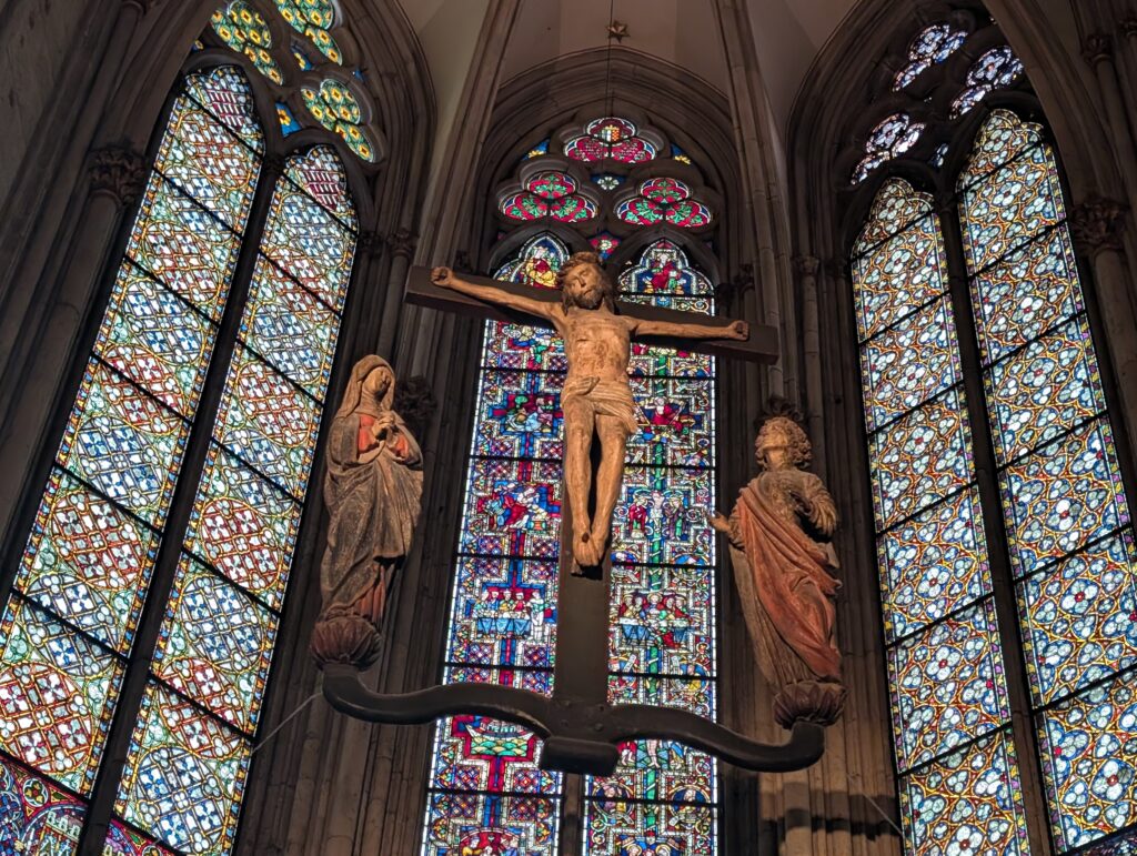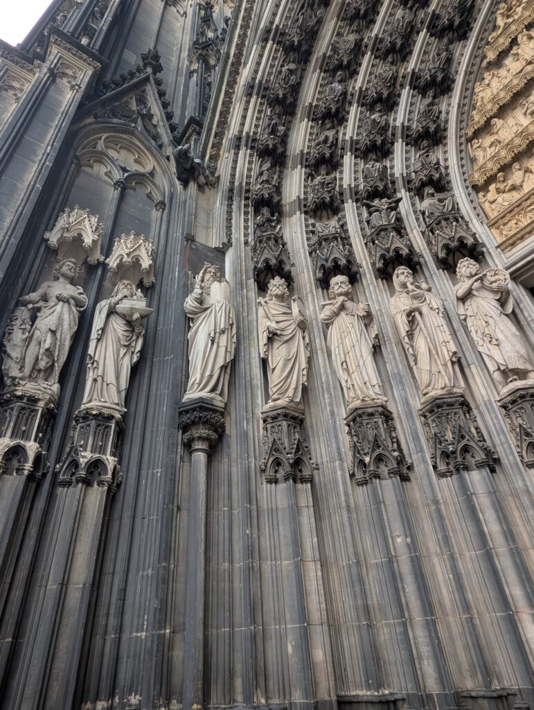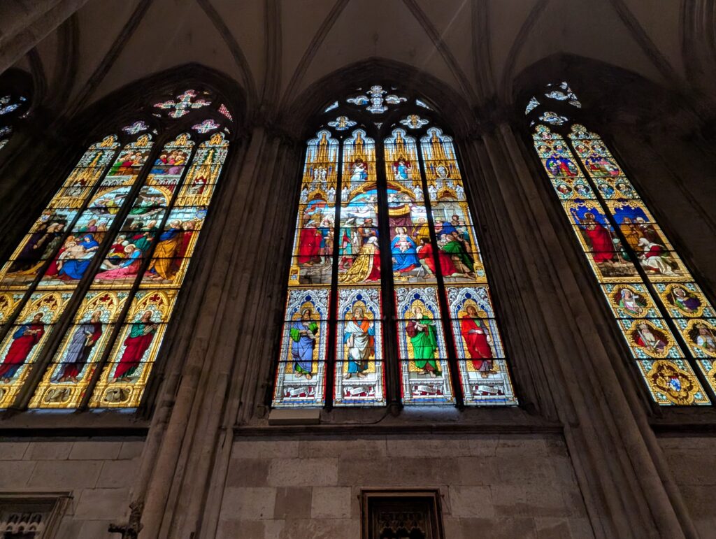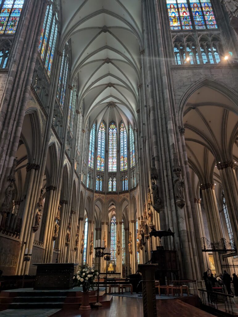 Inside the cathedral is a huge, golden reliquary — the Shrine of the Three Kings — built in the 12th–13th century. The relics arrived in 1164, brought from Milan by Archbishop Rainald von Dassel. The Dom is a major pilgrimage site as a result.
