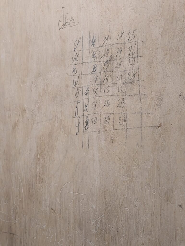 Drawings and scratchings still exist on the walls and many others are recorded in visuals in other rooms. There are 14 prison cells.