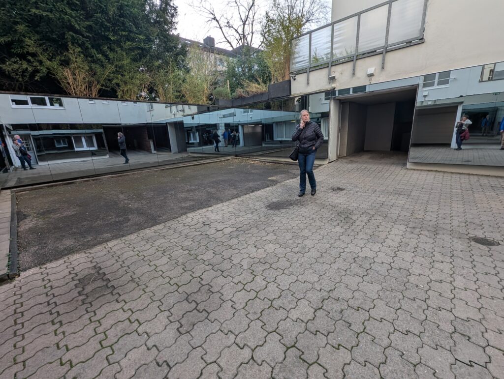 An artist created these wall of mirrors for the courtyard. Mirrors were positioned in such a way that there was no way that you could not see yourself. It was quite a feeling that you could not be there and not “see”. You were exposed and also able to see everything. Powerful and emotional.